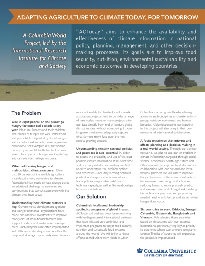 Adapting Agriculture to Climate Today, for Tomorrow